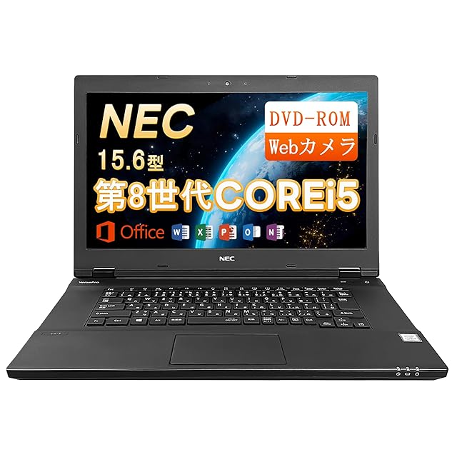 商品名:【整備済み品】NEC ノートパソコン VersaPro VKM17/VKT16 15.6型 第8世代Core i5-8250U(最大動作3.4GHz) /Windows11 Pro/MS Office2019/WIFI内蔵/Webカメラ/DVD-ROM/Bluetooth/HDMI/ワイヤレスマウス付属 (Corei5-8th/テンキー非搭載, メモリ16GBSSD1TB)