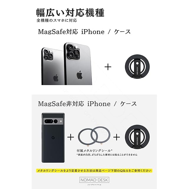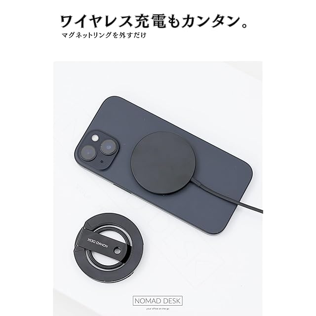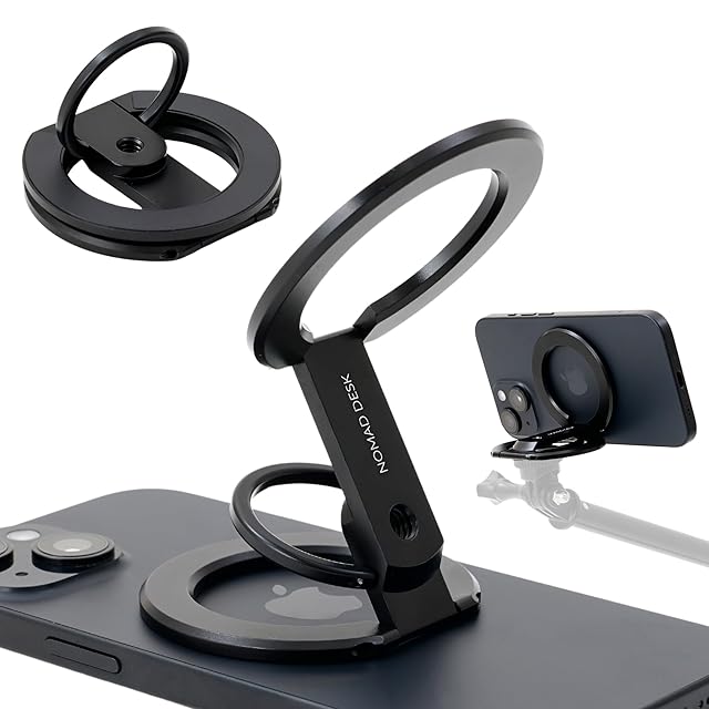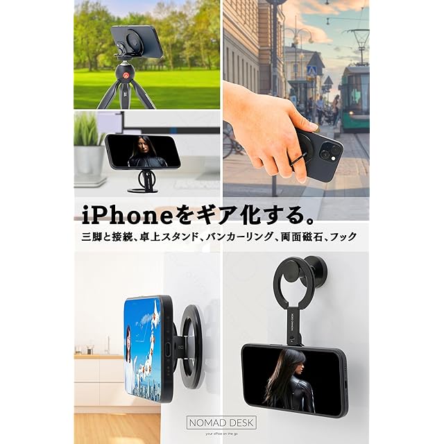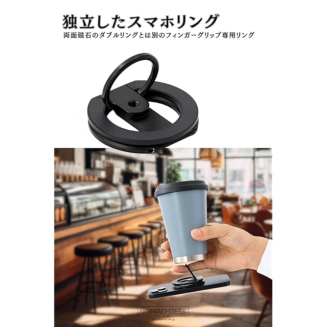 商品名:NOMAD DESK MagSafe対応 多機能スマホリングスタンド 両面マグネット 三脚接続 2つの関節 軽量薄型 独立したバンカーリング 自撮り棒と接続 1/4" ネジ 三脚マウント iPhone 16 15 14 13 12 NOMAD STAND GEAR EDGE2 ノマドデスク (ブラック)
