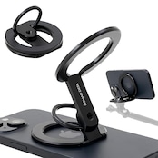 独立したスマホリングを持つ、MagSafe対応の両面マグネット、リングスタンド 1/4インチネジ穴で三脚、自撮り棒と接続可能