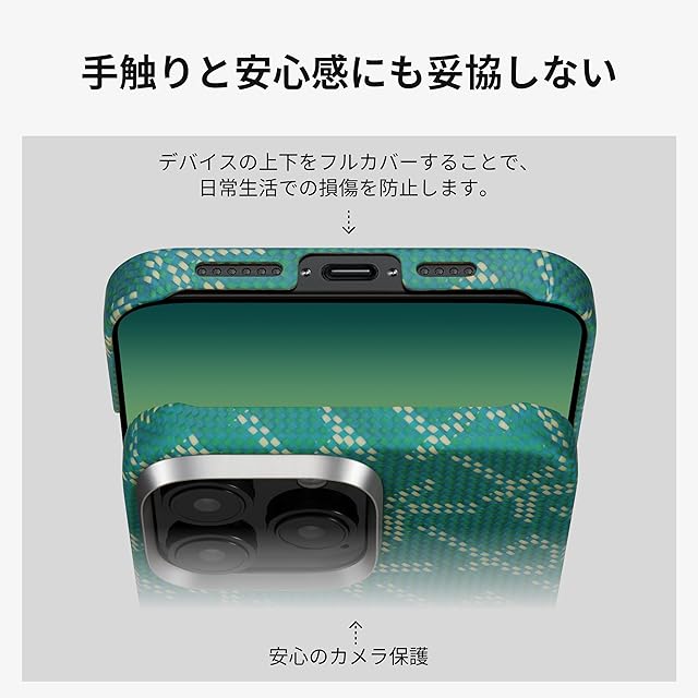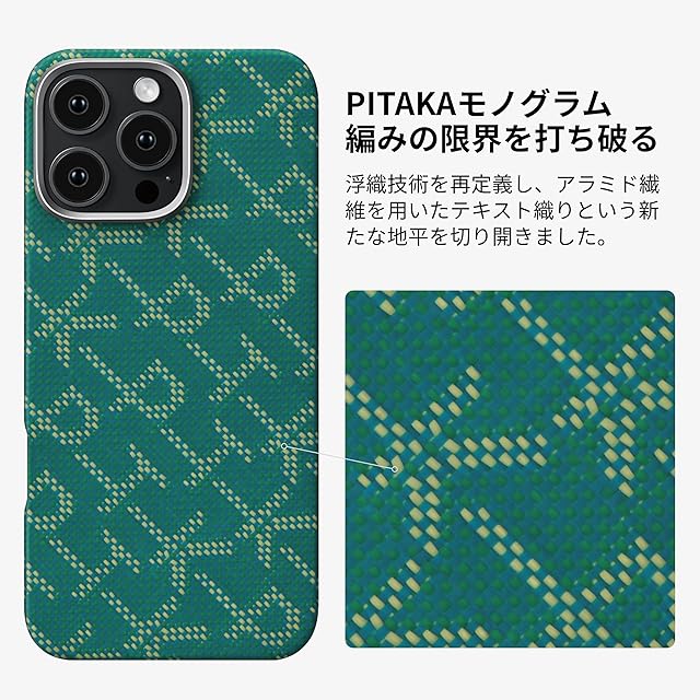 「PITAKA」iPhone 16 Pro用 極薄/浮織ケース MagSafe対応 上下カバーした アラミド繊維製 ワイヤレス充電対応 耐衝撃 薄型 おしゃれ (9周年記念版-グリーン) | TREND DESIGN 家電専門店