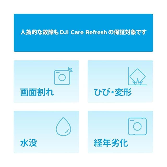 メーカー期間延長サービス:DJI Care Refreshの有効期間内において、対象パーツに性能上の故障が発生した場合、メーカーとして無償修理を提供します。製品をより長く安心してご使用いただけます。