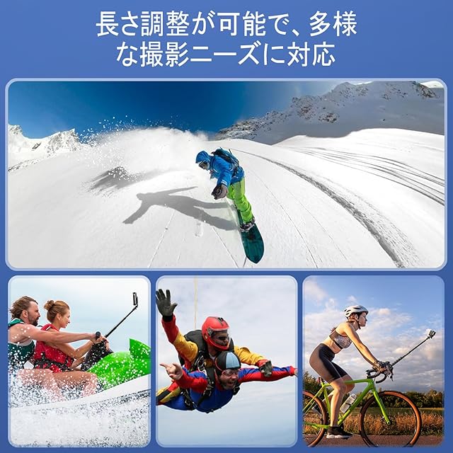 【幅広い互換性】延長棒の上部は標準1/4インチネジで、またはgopro用のアダプターに付属して、HD カメラを含めたすべてのGoPro Hero (ゴープロヒーロー)カメラに対応可能で 、Insta360X4,X5用 ONE RS/ONE X2/ONE X/ONE DJI Osmoなどアクションカメラとスマホなどに適しています