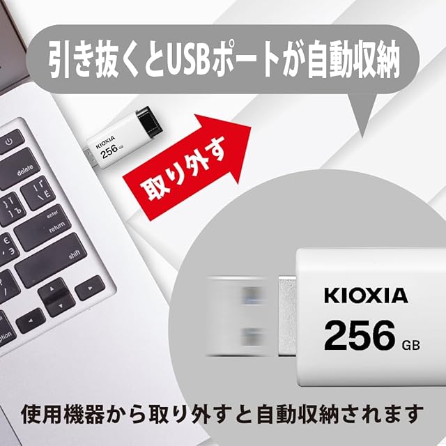 商品名:KIOXIA(キオクシア)【日本製】USBメモリ 256GB USB3.2 Gen1 ノックスライド式 国内サポート正規品 KLU304A256GK