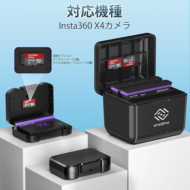 【対応機種】Anegine Insta360 X4 交換用バッテリーと充電器キットは、純正の Insta360 X4 バッテリーを交換するもので、Insta360 X4カメラとのみ互換性があります。