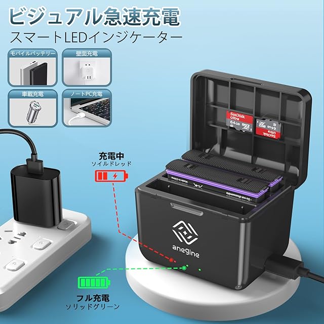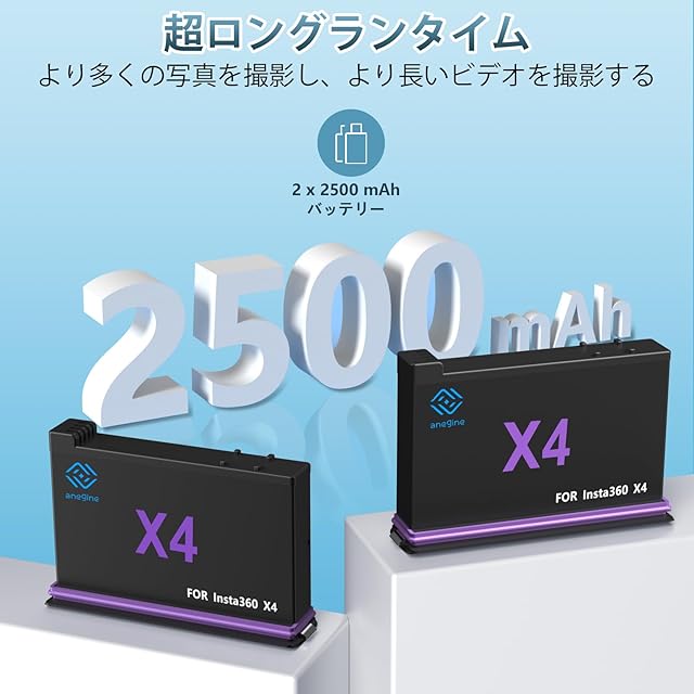 商品名:Anegine Insta360 X4 バッテリー 充電器 セット インスタ360X4 バッテリー2個 2500 mAh Type C充電ポートインスタ360X4 急速充電器 3個バッテリ同時充電可能 Insta360 X4 カメラに対応