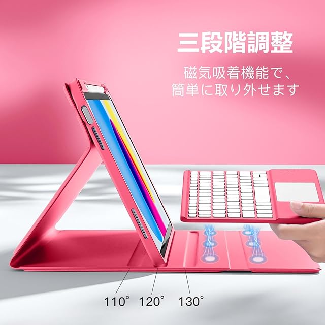 【脱着式キーボード&便利なApple Pencil収納】 キーボードは脱着式で、強力なマグネット内蔵により安定して装着可能。Pencilホルダー付きで、ペンやアダプタをしっかり収納。持ち運びも便利!作業や動画視聴に合わせて自由に角度調整可能。様々なシーンで活躍!