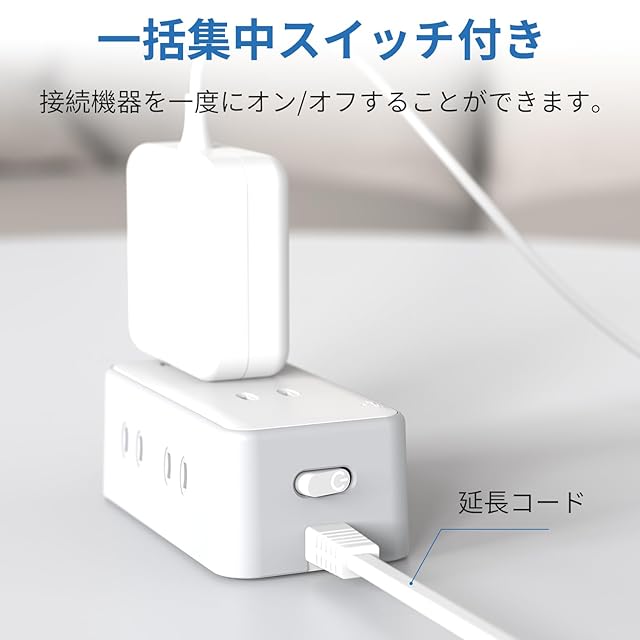 【スイッチ付き】:一括スイッチが付いており、接続した機器の電源を一度にオン/オフできます。