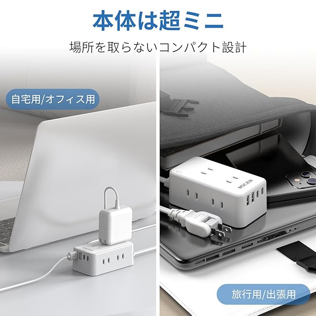 【一台十役】:電源タップは6個AC差込口、2個USB-Cポートと2個USB-Aポートがあります。3面にはAC差込口が2口ずつあり、配線がスッキリです。
