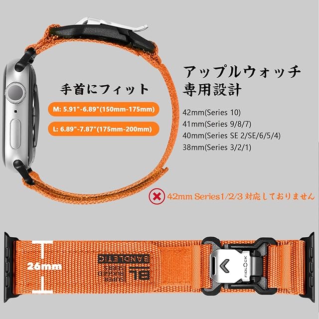 【Fidlockバックル・脱着簡単】アップルウォッチ用の バンド 、fidlock マグネットバックルとマジックテープのユニークなデザインは、さまざまな状況下において瞬時に着脱でき、偶発的な脱落を確実に防止し。その革新的なデザインによって便利性、安全性、そして楽しさの要素に優れたユーザー体験を提供します。