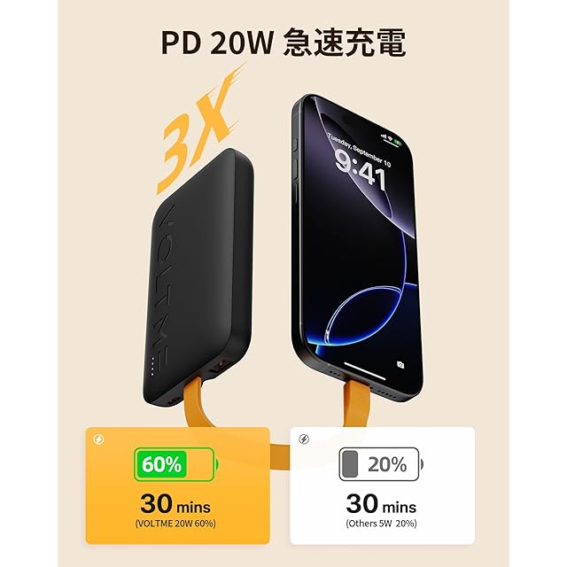 VOLTME モバイルバッテリー ケーブル内蔵 大容量 PPS対応 Black