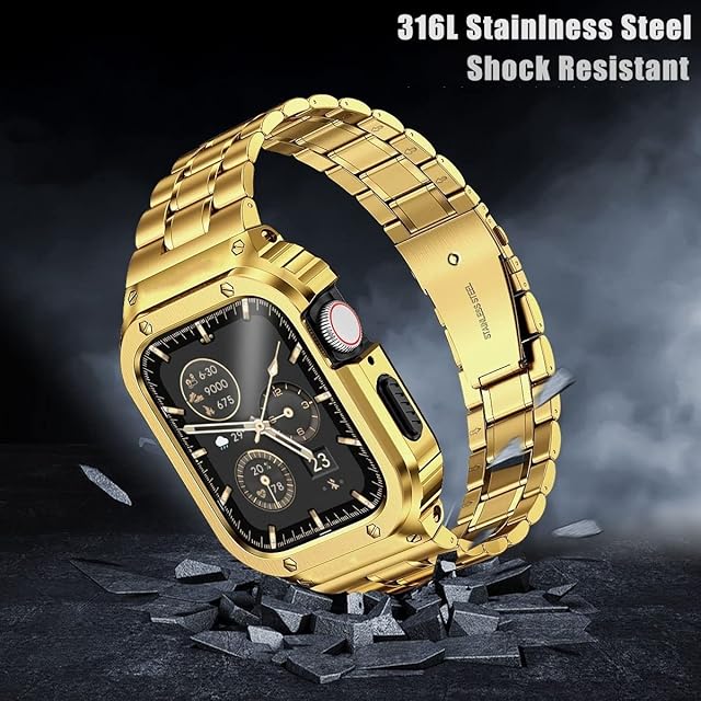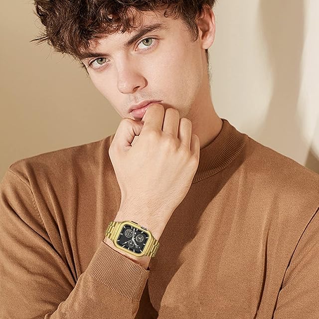 MioHHR ステンレススティール製バンド、ケース互換性 Apple Watch Bands 42mm,金属製保護バンパーカバー付き頑丈なストラップ iWatch シリーズ 10 男性用. (ゴールド) | TREND DESIGN 家電専門店