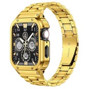 商品名:MioHHR ステンレススティール製バンド、ケース互換性 Apple Watch Bands 42mm,金属製保護バンパーカバー付き頑丈なストラップ iWatch シリーズ 10 男性用. (ゴールド)