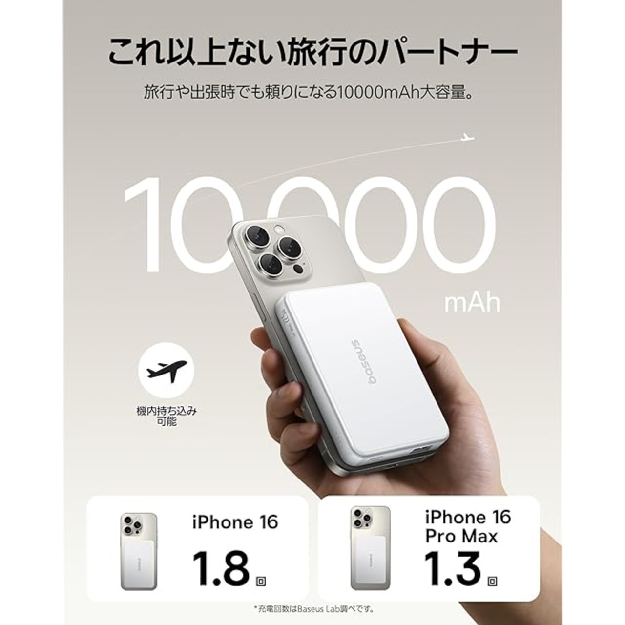 商品名:Baseus Qi2認証 モバイルバッテリー ワイヤレス充電 【 Qi2 15W急速充電 10000mAh / PD 20W SCP 22.5W QC 18W 】magsafe 対応 マグネット式 ワイヤレス/TypeC/USB-A 出力 iPhone 16 / 15 / 14 / 13 / 12 シリーズ対応 有線充電対応 Qi2公式認証 PSE認証 AirPow 2 (ホワイト)