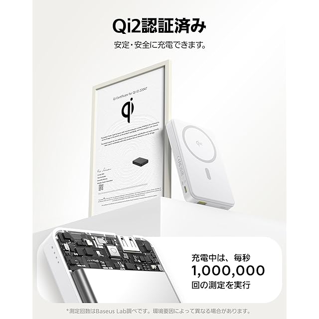 【あらゆるデバイスに対応・安心性の】Qiワイヤレス充電に対応、またはUSB-CポートかUSB-Aポートを持つあらゆるデバイスへの充電が、これ一つで実現(*iPhone以外のQi2非対応デバイスにワイヤレス充電する場合、機種により5Wのみ充電できる場合があります)。過充電・過電流保護等の安全システム機能を搭載し、安心してご利用いただけます。UN38.3規格に準拠し、PSE認証済みなので安全性がされています。【Baseus安心】24ヶ月の安心を提供します。万が一製品に不具合が生じた場合は、弊店のカスタマーサポートまでお気軽にご連絡ください。連絡先:アカウントサービス→注文履歴→出品者に連絡する。