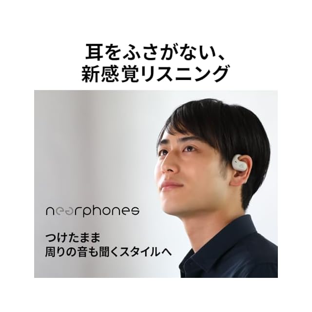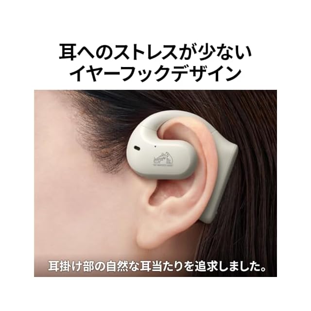 従来のイヤーピースを耳に入れるスタイルではなく、耳にイヤーフックをかけるだけのスタイルの耳をふさがない新形状デザインを採用。耳をふさがない開放感と耳への負担の少ない装着感を実現。また、耳をふさがないため、屋外などの周囲が気になるシーンでも周囲の音も聞き取ることが可能。