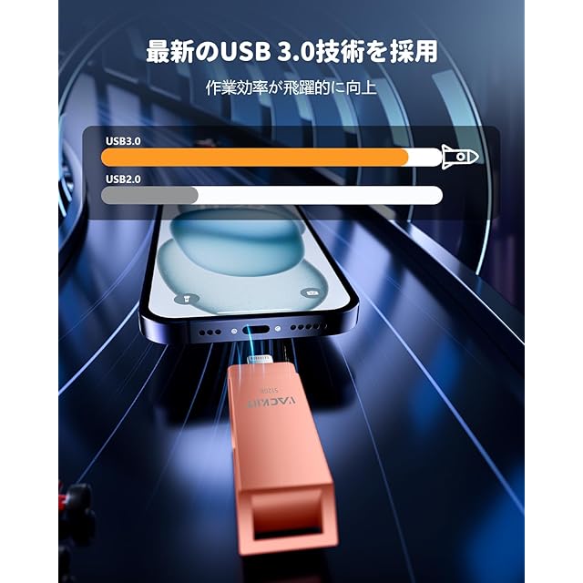 商品名:Vackiit「正規MFi認証品」iPhone用 usbメモリ512GB phone 写真データ保存 usb iphone対応 高速 USB 3.0 phone用外付けメモリiPhone/iPad/iPod/Win/Mac兼用 タイプc usbメモリ セキュリティ機能付 phoneバックアップ 携帯容量不足解消 ピンク