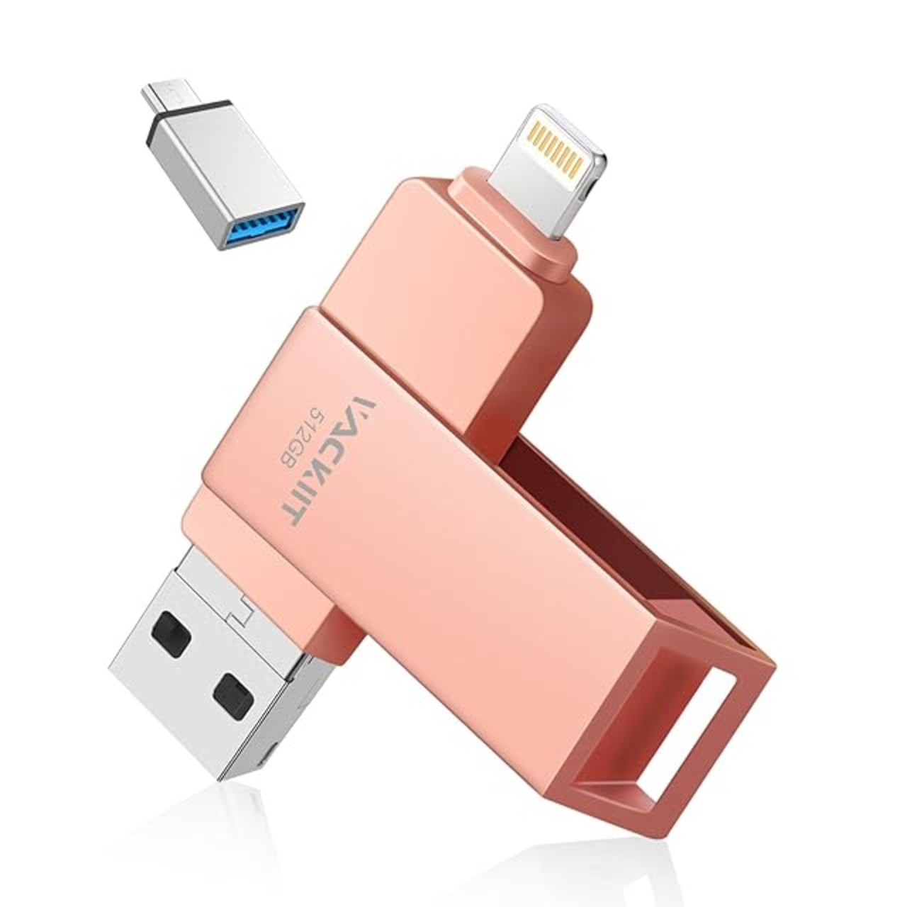 Vackiit「正規MFi認証品」iPhone用 usbメモリ512GB phone 写真データ保存 usb iphone対応 高速 USB 3.0 phone用外付けメモリiPhone/iPad/iPod/Win/Mac兼用 タイプc usbメモリ セキュリティ機能付 phoneバックアップ 携帯容量不足解消 ピンク