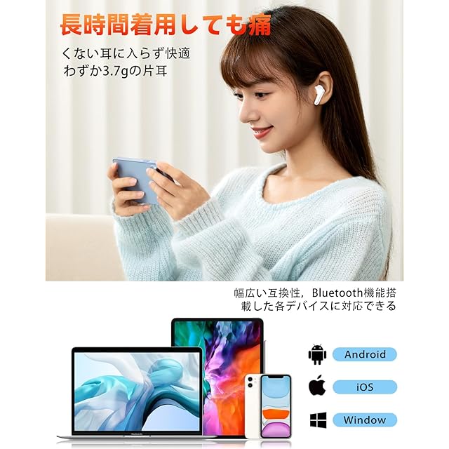 【人間工学に基づいたデザイン】このBluetoothイヤホンは、人体工学に基づいたデザインで、耳の自然な形状にぴったりフィットします。長時間の使用でも快適で、圧迫感がなく、スポーツ中でもしっかりと装着され、落ちる心配はありません。ランニングやサイクリング、ジムでの高強度トレーニングなど、激しい動きでも安心して使えます。軽量で柔らかなイヤーチップが、長時間の使用でも快適さを提供し、音楽や通話を自由に楽しめます。忙しい日常でも、スポーツ時でも、あなたのライフスタイルにぴったりのイヤホンです。弊社はお客様に信頼される会社となることを目標として日々努力しております。製品に関してお困りな事や不具合等がございましたら、ご心配なさらないでご連絡ください。連絡方法:「アカウントサービス」>「注文履歴」>「販売元」>「質問する」。