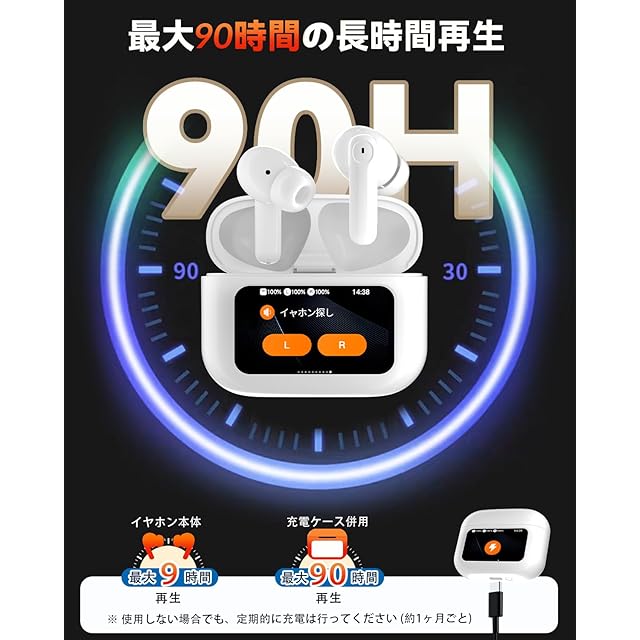 商品名:イヤホンBluetooth ワイヤレスイヤホン 多機能タッチスクリーン+ANC搭載 6つのシリコンマイク搭載 IPX7防水最大90時間再生 2025最新ブルートゥースイヤホン EDR+Bluetooth5.4搭載 カルナ型 HIFI音質低遅延接続瞬時Type-C充電 WEB会議/運動/ゲーム/テレワーク/通学/通勤/スポーツ/音楽用iPhone/Android対応 (white)