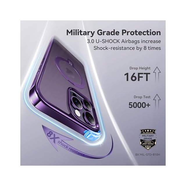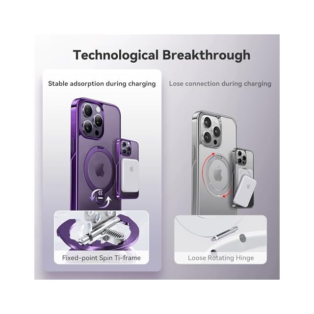【透き通る上質感・定点360°回転】CASEKOO iPhone 14 Pro Max 用ケース クリア 米軍MIL規格 金属感 フィット感 MagSafe対応 ワイヤレス充電 横縦両立 角度自在 超強磁力 耐衝撃 高耐久性 ラップホール付き 透明 黄変防止 いphone14pro max 用ケース「MagicStand Pro Kosai」(パープル)