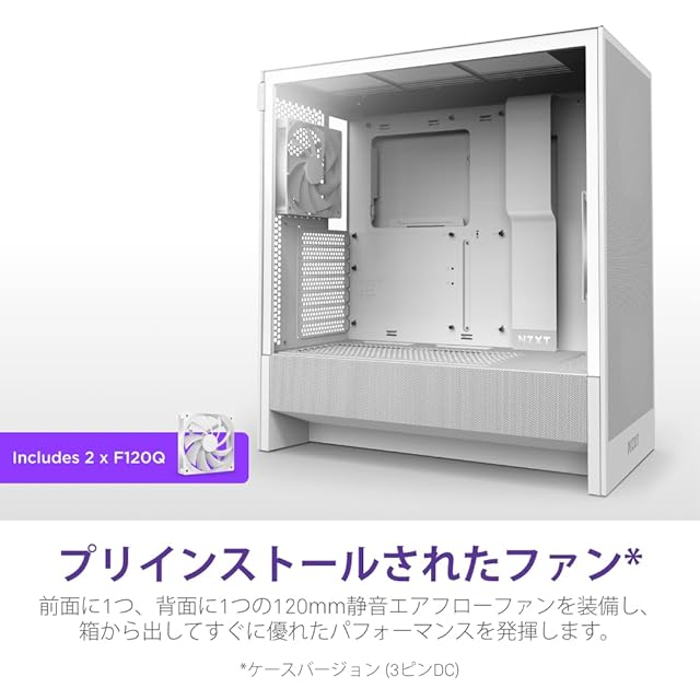 商品名:NZXT H5 Flow v2 White 120mmファン 2基搭載 ミドルタワー ATX PCケース ホワイト CC-H52FW-01 CS9083