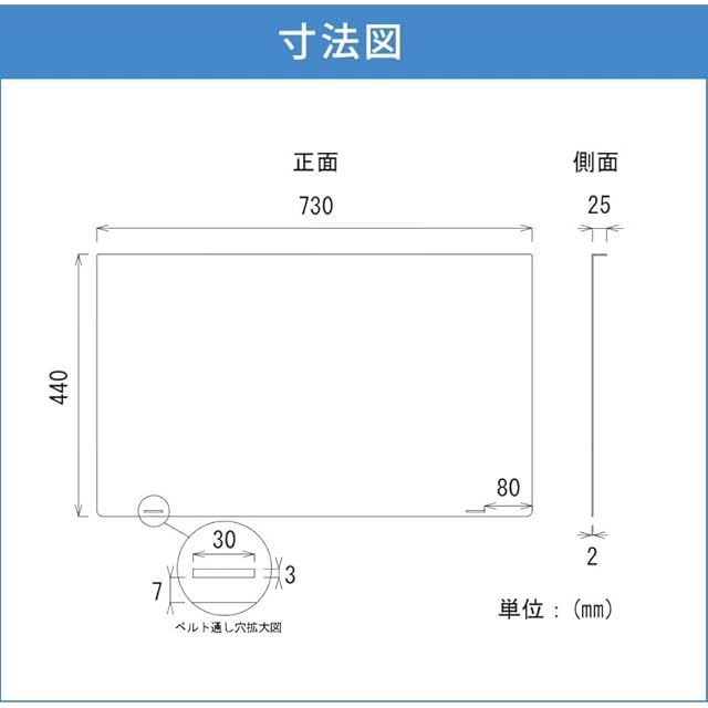 【サイズ】W730×H440mm 奥行き25mm ベルト110cm×2本 アクリル厚み:2.0mm