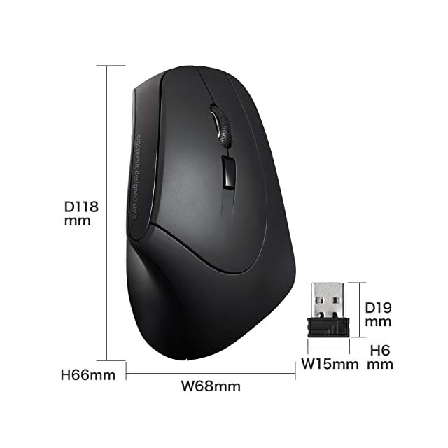 人間工学形状で、手首への負担が少ないエルゴノミクスデザインのワイヤレスマウスです。