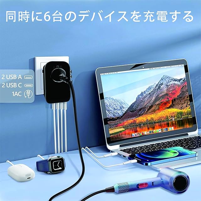 持ち運びが便利な変圧器】 変圧器+変換プラグ+電源タップ+USB充電器+アダプター6in1セットで、1台で6つの役割を果たせます。必要な旅行小物を少なく持ち、より身軽な海外旅行を楽しめます。のコンパクトでスリム軽量なデザインで、何処へ行ってもボディバッグ・ワンショルダーやバックパックの中に入れば全然邪魔になれず、持ち運びに非常に便利です。