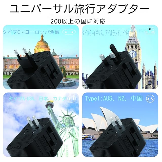 変換プラグ 全世界対応】当社のこの変圧器と変換プラグのコンボグの部分はC、BF、O、Aという世界の主要4タイプを採用、コンセントの部分はマルチタイプコンセントを採用。フランス、ドイツ、韓国、イギリス、香港、アイルランド、中国、アメリカ、オーストラリア、ニュージーランド、アメリカなどの世界中200カ以上のに対応。さまざまなコンセント(C、BF、O、O2、A、SEタイプ)を目的のコンセント(C、BF、O、Aタイプ)に自由に変換できます。この電源トランスが海外のコンセントの種類や電圧の不一致の悩みを完璧に解決し、これは間違いなく海外旅行の最適なパートナーです