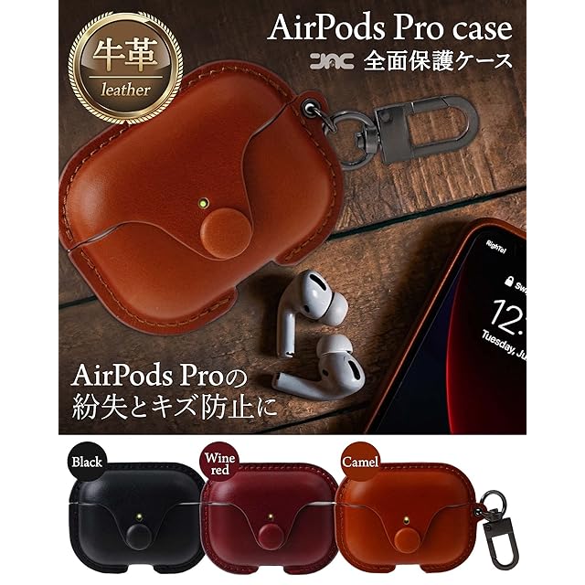[JAC] AirPods Pro ケースカバー 第1世代/ 第2世代 エアーポッズプロ ケース 前面LEDランプが見える 高級 本革 牛革 全面保護 耐衝撃 ワイヤレス充電対応 (キャメル) 父の日 ギフト プレゼント | TREND DESIGN 家電専門店