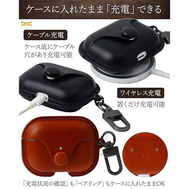 商品名:[JAC] AirPods Pro ケースカバー 第1世代/ 第2世代 エアーポッズプロ ケース 前面LEDランプが見える 高級 本革 牛革 全面保護 耐衝撃 ワイヤレス充電対応 (キャメル) 父の日 ギフト プレゼント