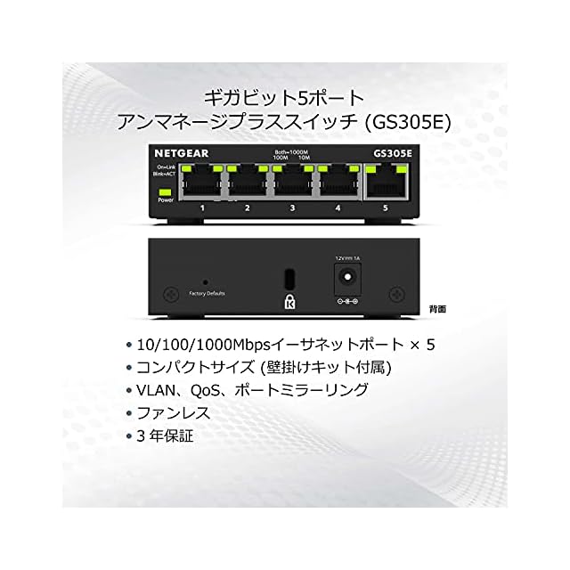 商品名:【正規品】 ネットギア NETGEAR スイッチングハブ 5ポート 1G 金属筐体 静音ファンレス メーカー5年 アンマネージプラス GS305E-100JPS