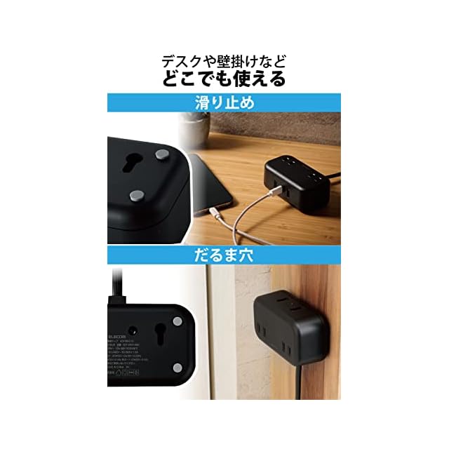 商品名:エレコム 電源タップ 雷ガード USBタップ 1.5m 2個口 USB 32W [ USB-A 2ポート/ USB-C 1ポート ] 卓上タップ 出張 旅行 USBポート用キャップ付き ブラック ECT-25215BK