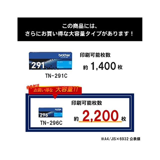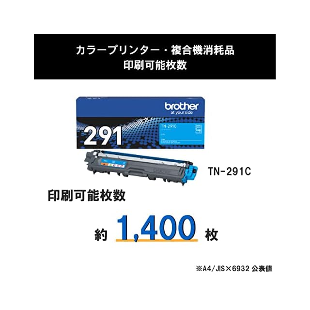 商品名:ブラザー工業 【brother純正】トナーカートリッジシアン TN-291C 対応型番:HL-3170CDW、HL-3140CW、DCP-9020CDW、MFC-9340CDW 他