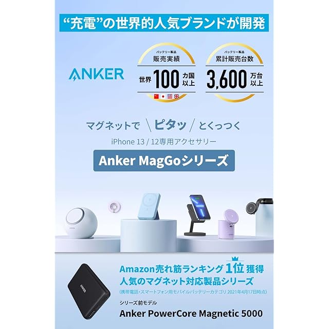 MagGoシリーズ:マグネットでピタッとくっつくMagSafe対応iPhoneシリーズ専用アクセサリー「Anker MagGoシリーズ」。日常のあらゆる使用シーンに応じて使い分けができる、MagSafe対応iPhoneに最適な製品シリーズです。