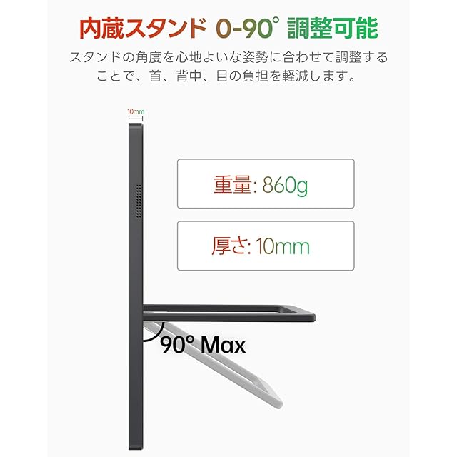 【軽量&薄型で持ち運びモニター】重さは約840g前後で、バッグにもすっきり収納。出張先やカフェ、自宅のベッドやソファでも、セカンドモニターとして大活躍。テレワーク・プレゼン・資料作成などのビジネス用途はもちろん、NetflixやYouTube鑑賞など“ながら見”にもぴったり。プロの方にも、ご自宅でゆったり楽しみたい方にもおすすめの1台です。