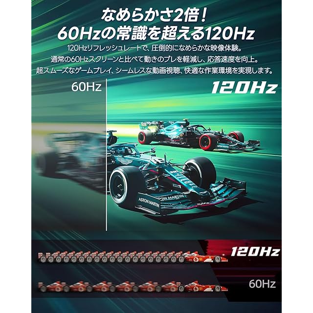 【120Hz高速応答ゲーミングモニター】120Hzの高リフレッシュレートに対応し、FPSやアクションゲームなど動きの速いシーンでもストレスのない映像体験を実現。一般的な60Hzより応答性が高く、ゲーマーはもちろん、動画視聴やブラウジングもより快適に楽しめます。さらに約1670万色(8bit)表示対応で、鮮やかで自然な色彩と滑らかなグラデーションを表現可能です。