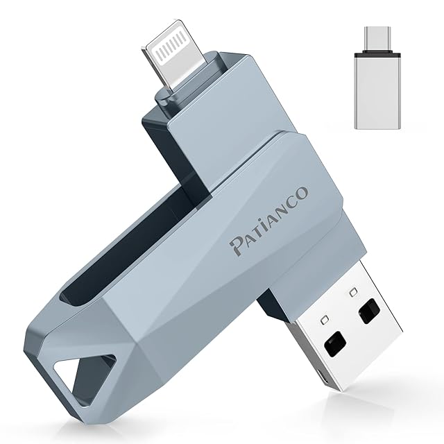 Patianco【MFi認証品 セキュリティ機能付】iPhone用 USBメモリ 256GB 3in1 データ移行 usb lightning/USB/Type-C搭載 高速 スマホ 写真データ バックアップ 大容量 iPhone/iPad/PC/Android/Mac対応 写真・動画保存 スマホ容量不足解消 回転式 iPhone 15/14/13/SE/iPad Air/Proなど対応 グレー | TREND DESIGN 家電専門店