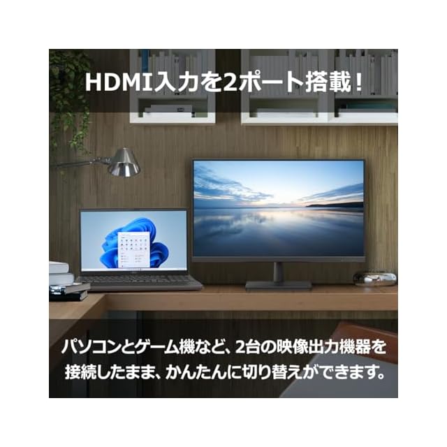 ディスプレイ:23.8型ワイドフルHD [1920×1080] In-Plane Switching LEDバックライト ノングレア液晶/ 入力端子:HDMI × 2 + VGA × 1/ 付属ケーブル:HDMIケーブル(1.8m) × 1