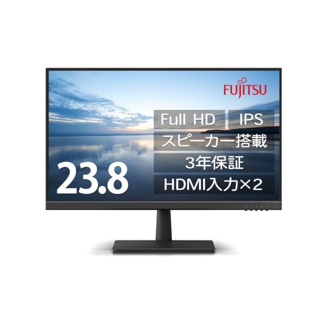商品名:富士通 ディスプレイ 23.8インチFull HDモニター(IPS/HDMI×2/アナログRGB/スピーカー搭載/VESA対応/3年) WMD24021BT