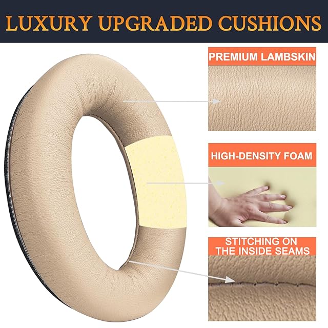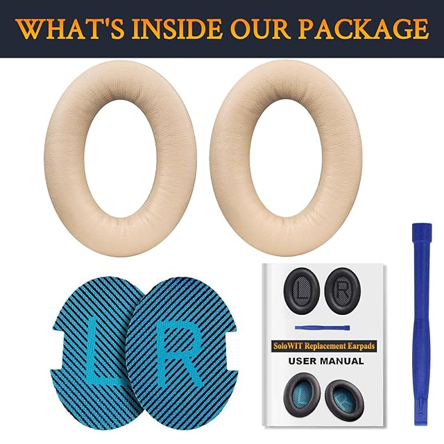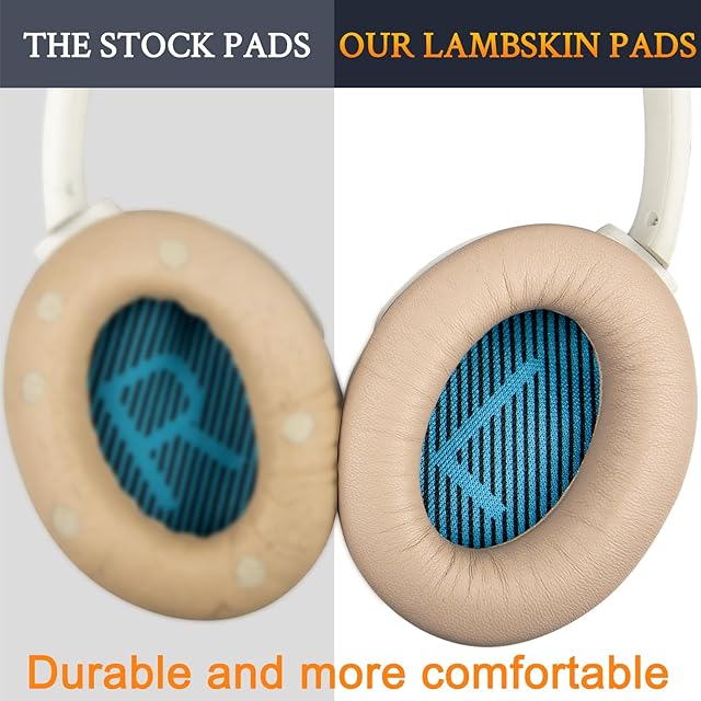 商品名:SoloWIT イヤーパッド イヤークッション Bose QuietComfort 15 QC15 QC25 QC35 QC2 /Ae2 Ae2i Ae2w/SoundTrue & SoundLink Around-Ear シリーズ 用 ヘッドセット パッド 柔軟性良い シープスキン ノイズアイソレーションフォーム 交換パッド (明るいベージュ)