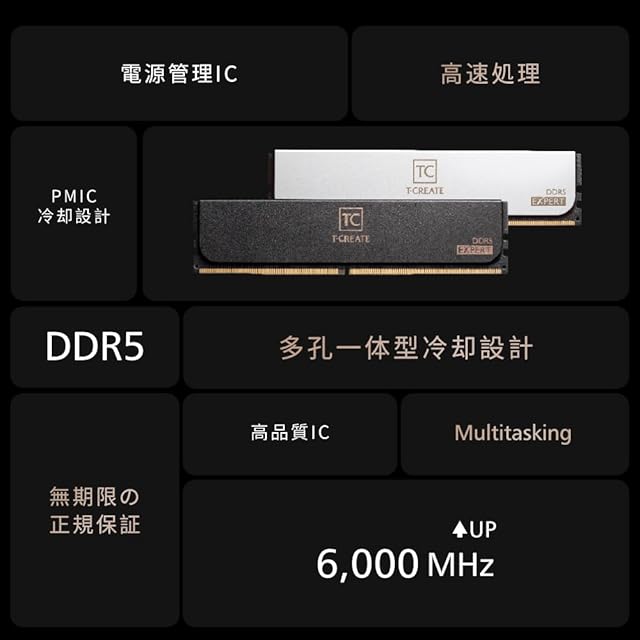 商品名:Team DDR5 6400Mhz PC5-51200 16GBx2枚(32GBkit)T-CREATE EXPERT White デスクトップ用メモリ ハイスピードタイプ 正規品 日本国内無期限正規 CTCWD532G6400HC40BDC01
