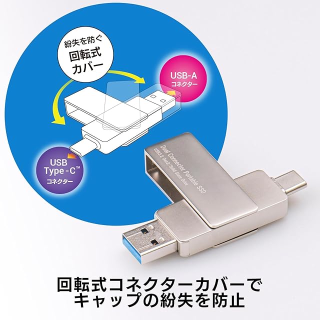 iPhone15シリーズでスマホケースを装着したまま使用できる USB Type-A(USB-A) / USB Type-C(USB-C)両挿し スティック型外付けSSD