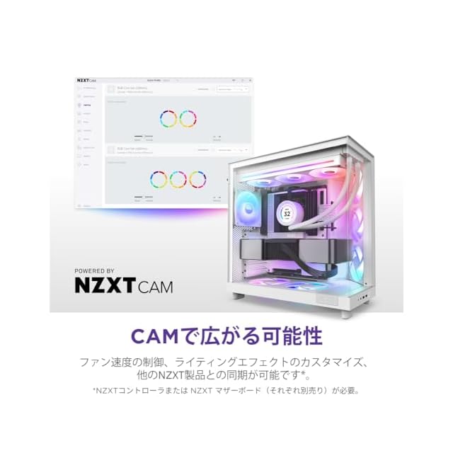 シングルフレームデザインにより、取り付けが簡単で、デジタル制御もシンプルです。NZXT RGB & Fan Controller(別売)に接続することで、CAMソフトウェアを使用してライティングとファンの動作を一元管理できます。