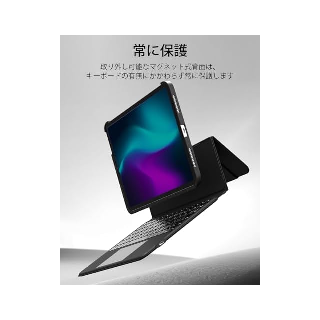 【汎用性の高い保護】:マグネット式の背面ケースは、キーボードの有無にかかわらずiPadを保護し、ワークステーションモードとタブレットモード間のスムーズな切り替えが行えます。