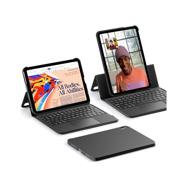 ESR Ascend iPad 第10世代 キーボード ケース iPad第10世代 (2022)用 トラックパッド付きキーボードケース バックライトキー付きマグネット着脱式キーボード 角度調節可能縦置き/横置きスタンド ブラック