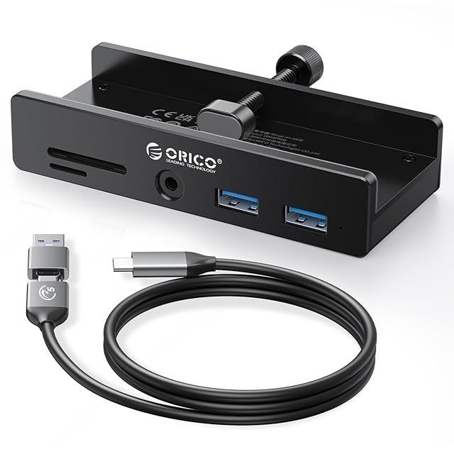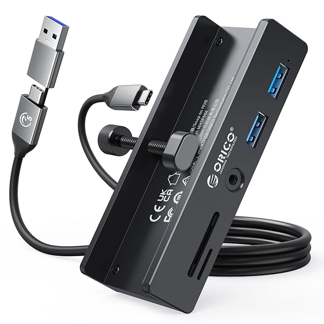 ORICO USB-Cハブ クランプ式 5ポート(TF/SDカードリーダー、USB-A×2、3.5mmオーディオ) 5Gbps高速転送 USB-C 給電ポート付き(5V) バスパワー/セルフパワー対応 1mケーブル付 アルミ pc周辺機器 Windows/Linux/Mac対応 MH5PMM ブラック | TREND DESIGN 家電専門店