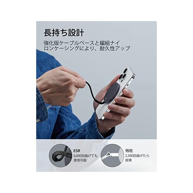 商品名:【2023改良型】ESR ワイヤレス充電器 MagSafe 対応 充電器 マグネット式 iPhone16/15/14/13/12 AirPods 4/3/AirPods Proシリーズ対応 急速充電 強力磁気吸着 強化編組ナイロンケーブル 2個入り ブラック