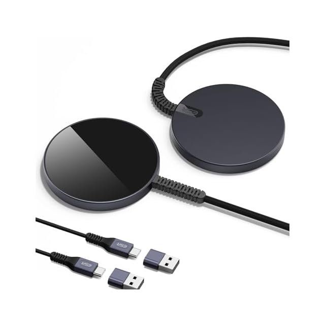 ESR MagSafe充電器用 2個パック ワイヤレス充電器 iPhone 16 Pro Max/16 Pro/16/16 Plus/15/14/13/12、AirPods 4/3/Pro 2/Pro、Galaxy S25 強力磁気ロック、強化編組ナイロンA/Cケーブル、ブラック