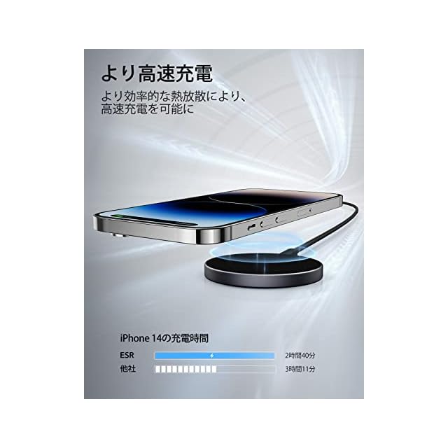【高速充電】高度な熱放散設計により、充電速度が最高に保たれるため、他のMagSafe充電器よりも 30 分速くスマホを充電可能。